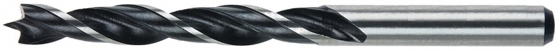Dieser Holzbohrer in Industrieausführung hat eine maschinell geschliffene Zentrierspitze mit zwei Schulterschneiden.